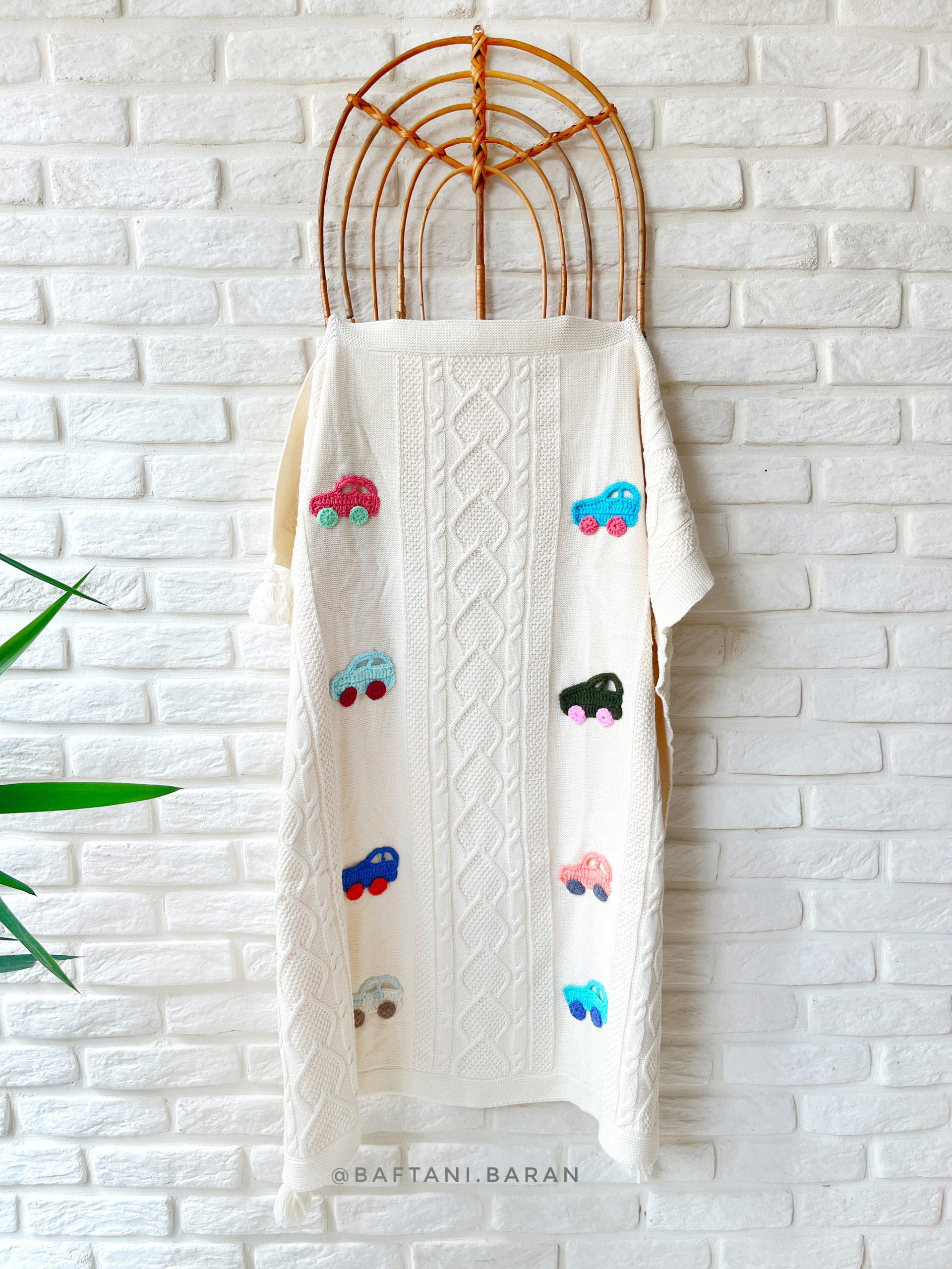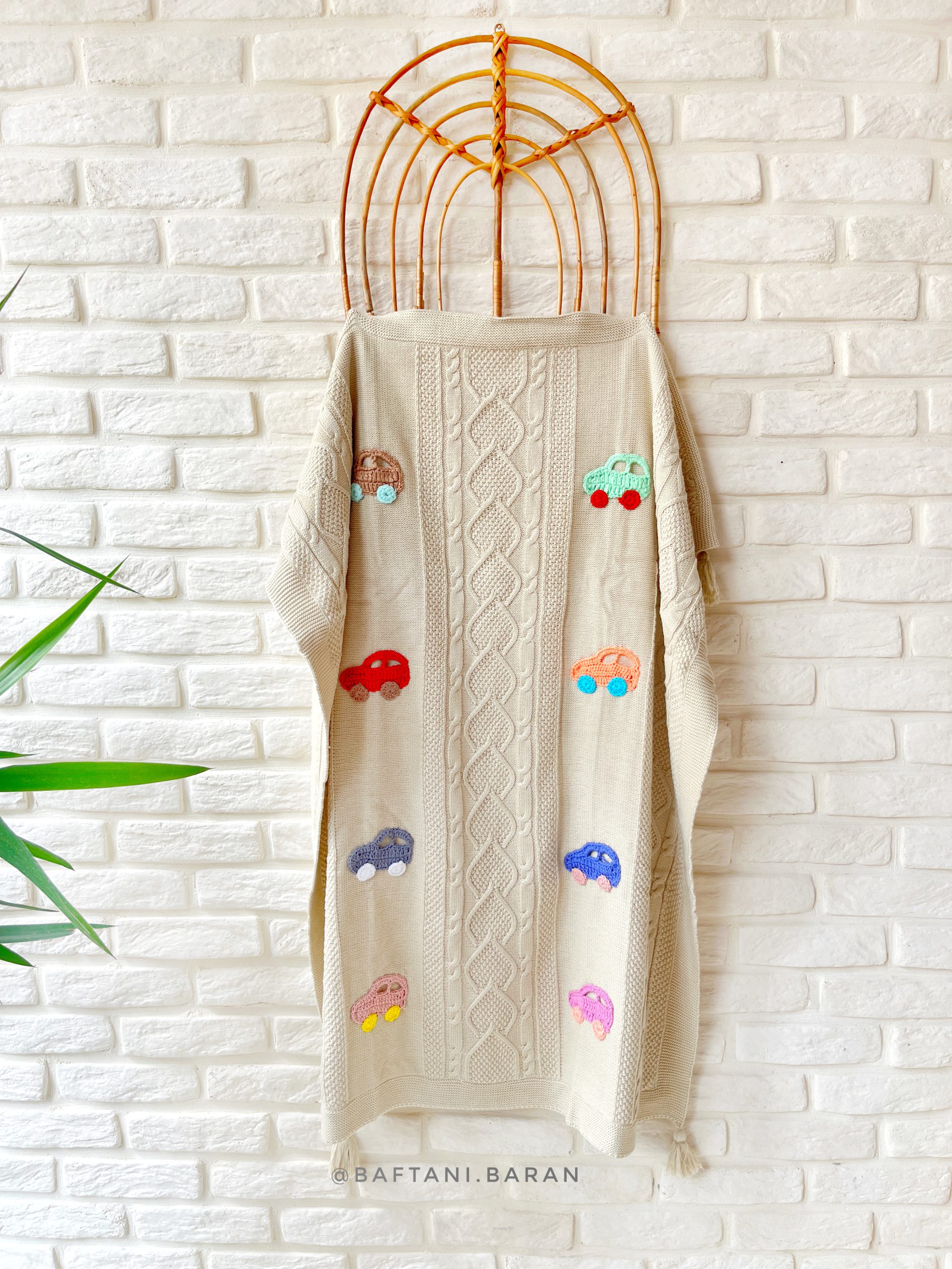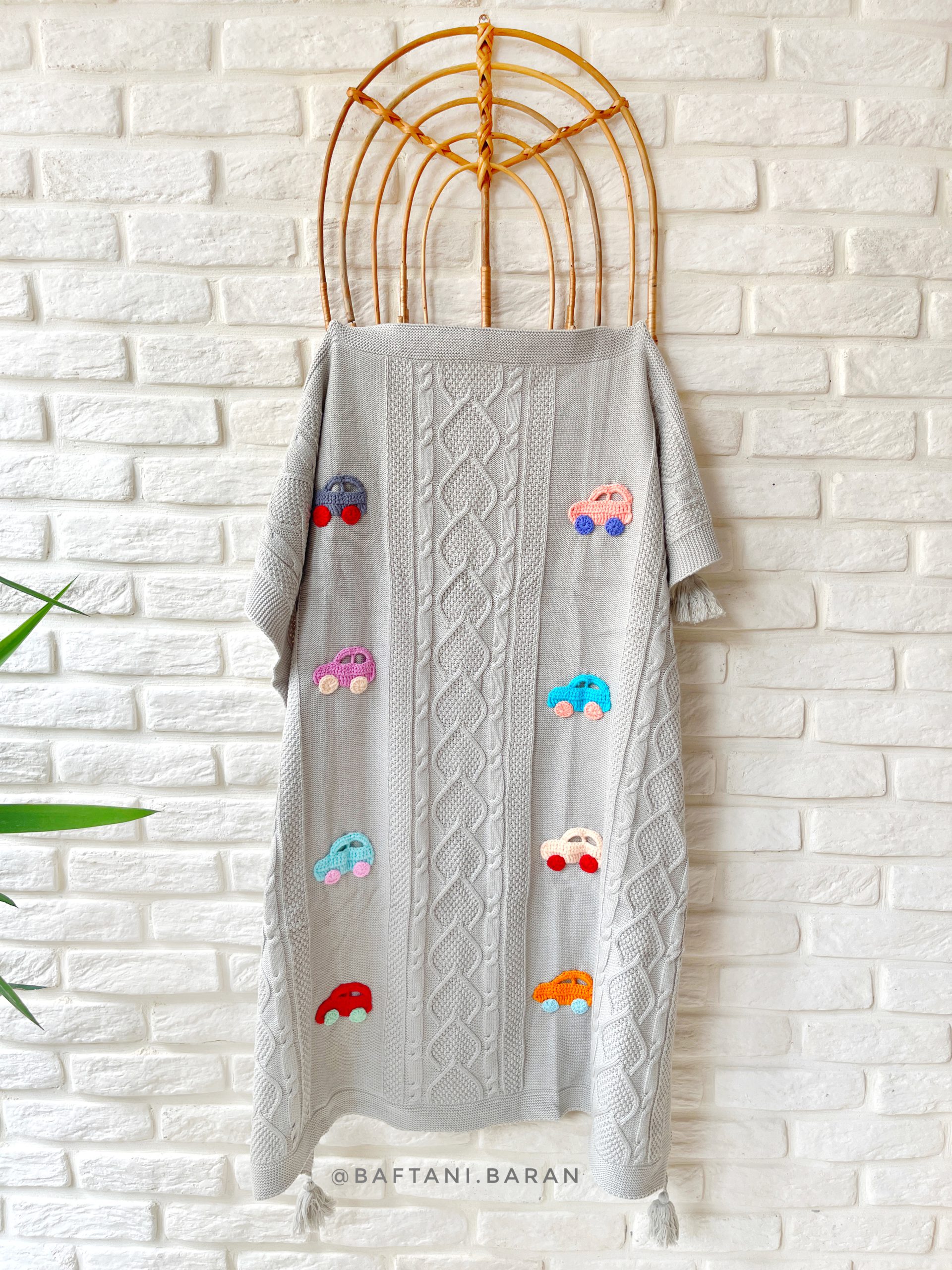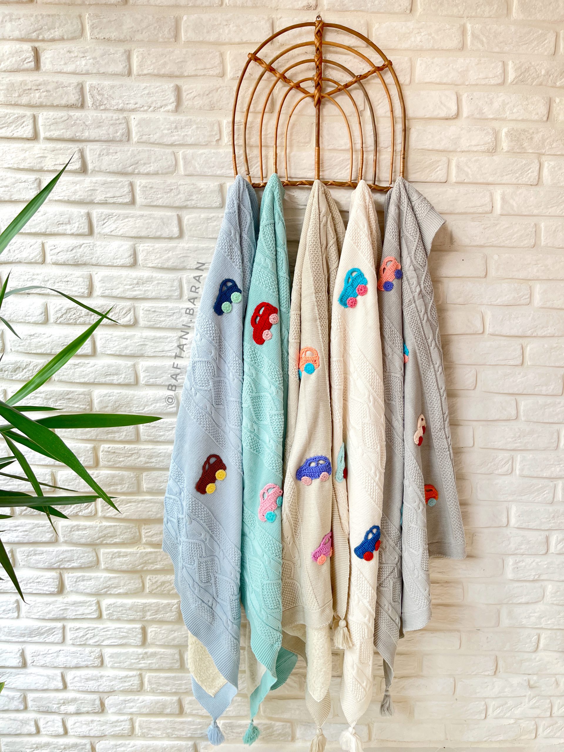 اپلیکه های روی پتو، دست بافت می باشد و روی پتو دوخته شده.